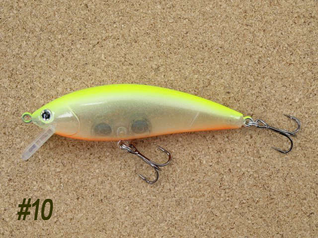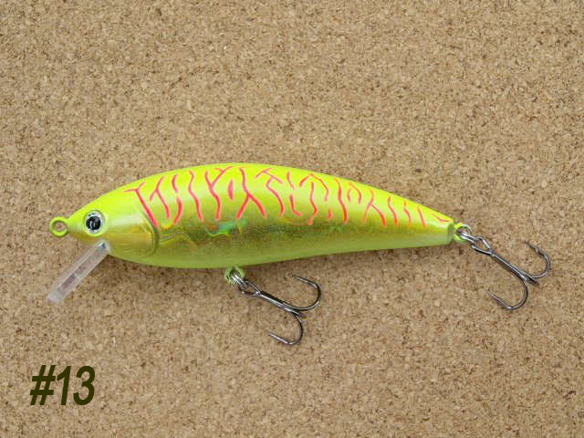 開発コンセプトは、止水等で、スプーンにスレて反応すら示さない、スレッカラシのモンスターを捕る為のミノー!