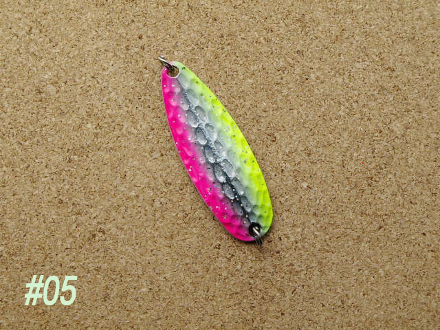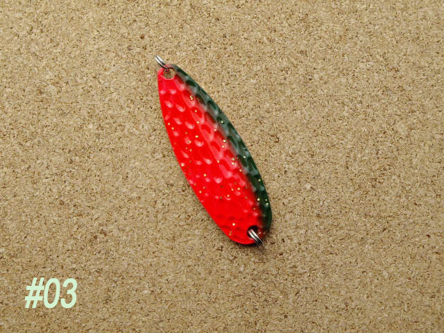 この為、光を乱反射し、プレーンタイプのスプーンに飽きたスレッカラシのトラウトを魅了しバイトさせます。